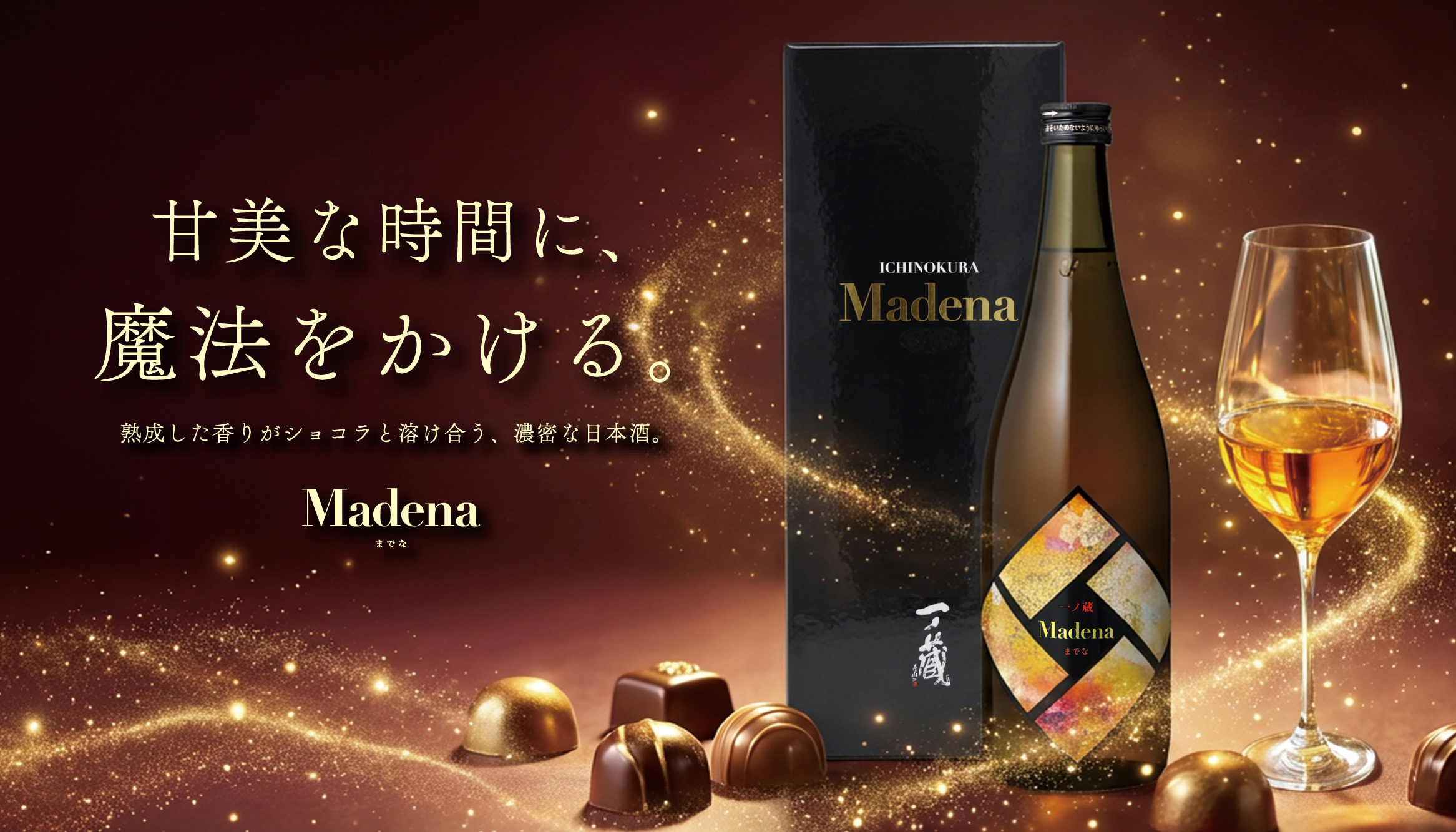 世界三大酒精強化ワイン(シェリー、ポートワイン、マデイラワイン)の製法(酒精強化・加温熟成)を日本酒に応用した全く新しい香味の一ノ蔵オンリーワンのお酒です。「Madena」の製造には、一ノ蔵がこれまで培ってきた「新しい日本酒造りのための技術」も生かされています。